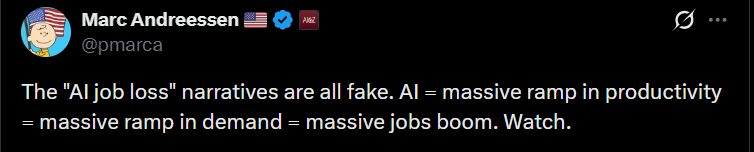 On March 6, enterprise capitalist and Netscape co-founder Marc Andreessen stated on X that fears about AI job displacement had been overblown.