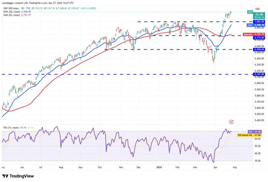 The upsloping 20-day exponential transferring common (6,948) and the relative energy index (RSI) close to the overbought zone counsel the up transfer could proceed. The subsequent ranges to observe on the upside are 7,500 after which 7,877.