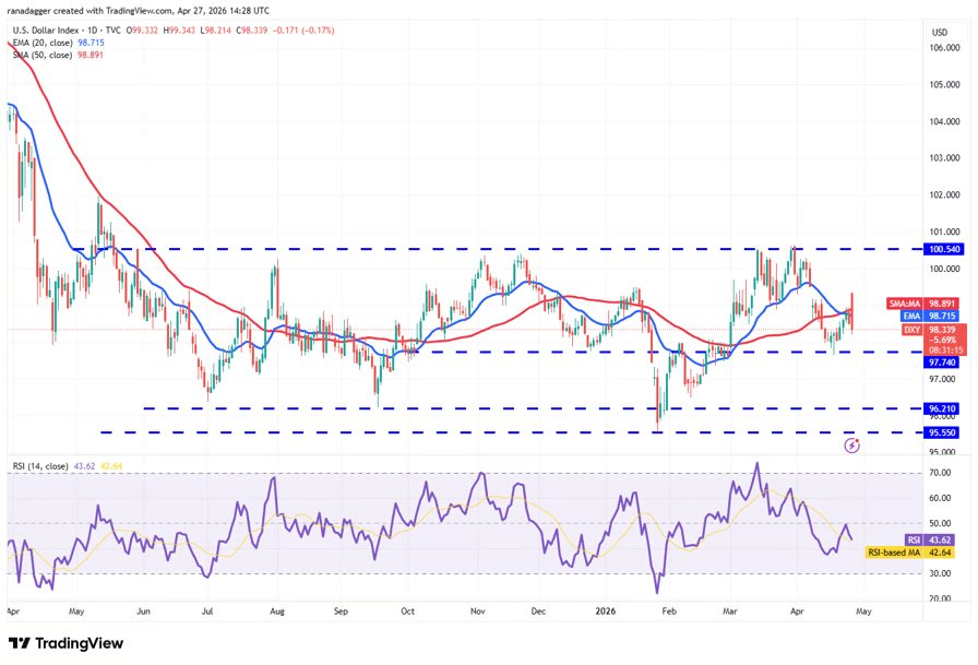The bears will try to push the value towards the 97.74 stage, the place consumers are anticipated to step in. Nonetheless, if the bears push the value under the 97.74 stage, the index could sink towards the 96.21-95.55 help zone.