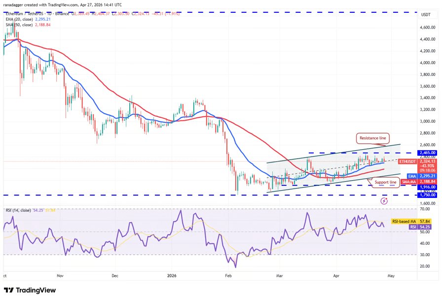 Ether (ETH) stays above the 20-day EMA ($2,295), however bulls have did not push it above the $2,465 resistance.