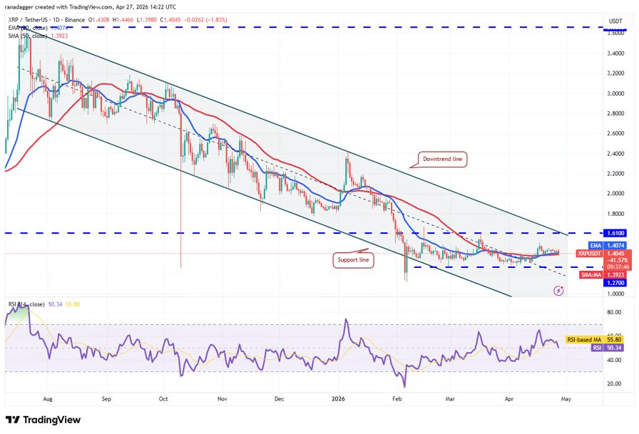 The 20-day EMA ($1.40) has began to show up regularly, and the RSI is close to the midpoint, indicating that the bulls have a slight edge. There’s minor resistance at $1.51, however whether it is crossed, the XRP/USDT pair could attain the downtrend line. A break and shut above the downtrend line alerts a possible development change. The pair could then rally to $2.
