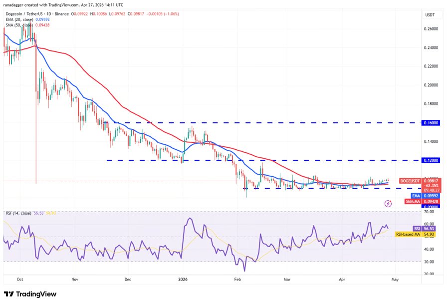 Contrarily, if the value turns down and breaks under the transferring averages, it alerts that the bears stay sellers on rallies. The DOGE/USDT pair dangers resuming the downtrend if the $0.09 help breaks down.