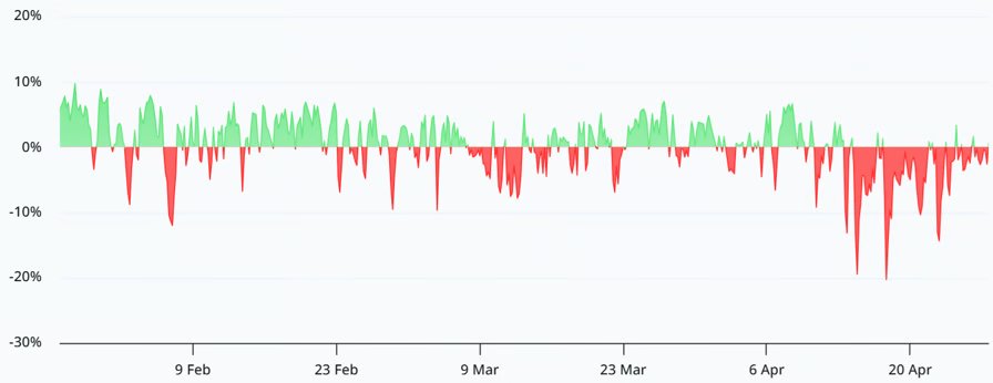 The Bitcoin perpetual futures annualized funding price has remained principally damaging over the previous two weeks, a typical signal of rising bearish confidence. Curiously, this occurred whereas Bitcoin’s value jumped to $78,000 from $72,000 on April 9 and most of these bets are at a loss at $76,700. A rally above $80,000 would doubtless pressure merchants to shut their positions.