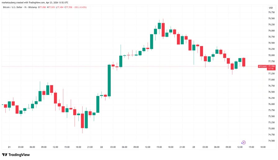 Knowledge from TradingView confirmed BTC/USD dropping to $77,200 previous to the Wall Avenue open.