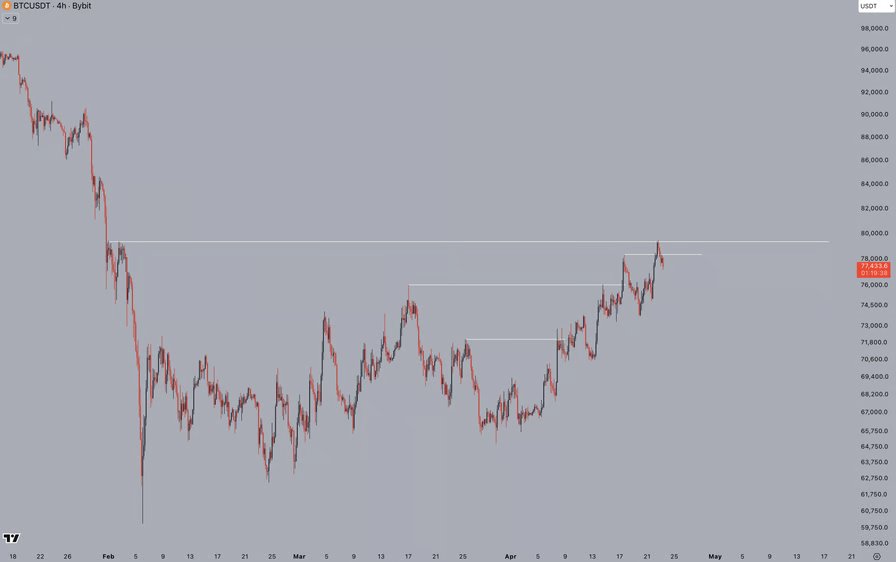 The pair hit $79,500 the day prior, marking its highest ranges because the final day of January because the $80,000 mark remained narrowly out of attain.