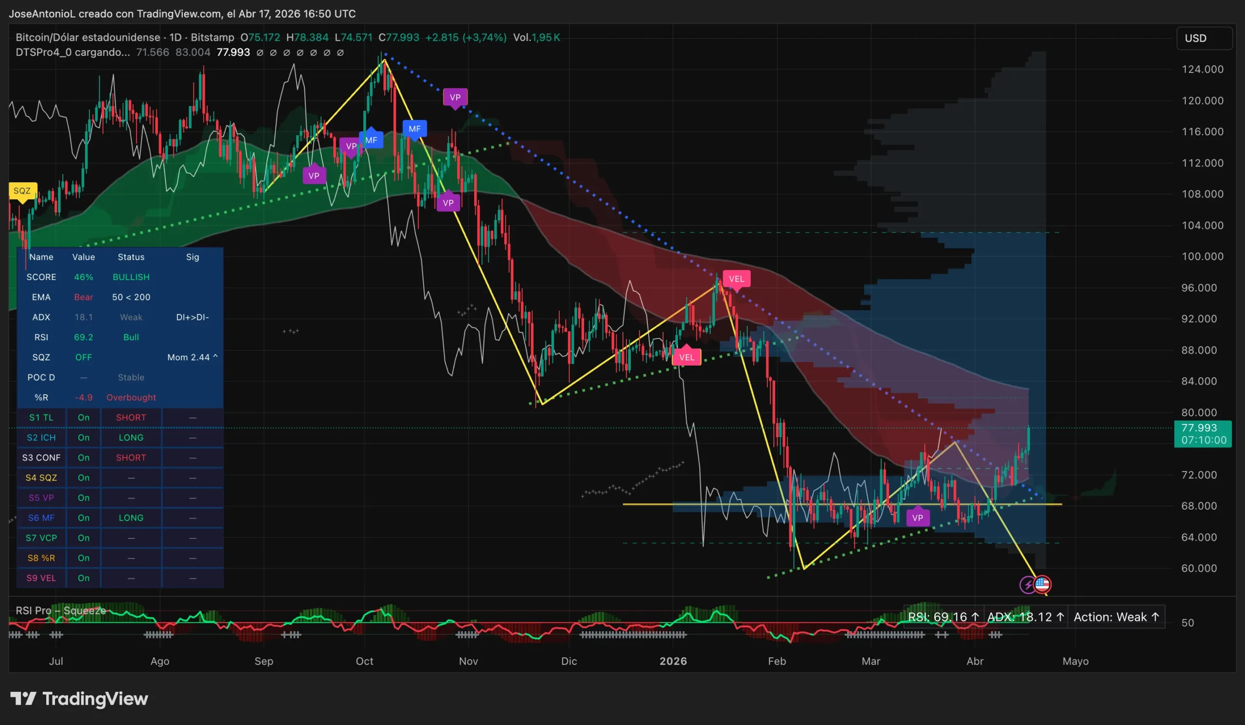 Right this moment’s candlestick on the Bitcoin charts is important. Bitcoin opened at $75,172 and merchants pushed the every day candle as much as $77,205—a 2.7% achieve on the session, with an intraday excessive of $78,384.