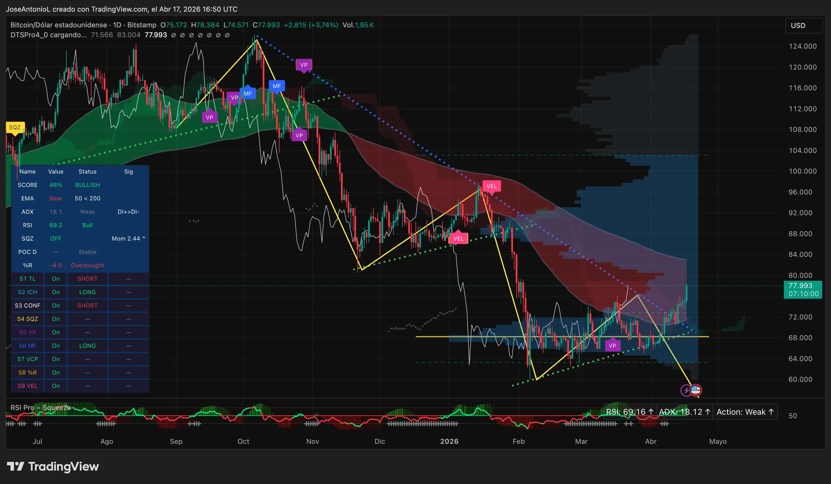 Total, in an optimistic state of affairs, Bitcoin holds above the damaged trendline (now appearing as assist round $74,000–$75,000), and the ADX begins climbing above 20–25. If bears take over once more, a brand new rejection, mixed with RSI rolling over from near-overbought ranges, sends Bitcoin again to check the assist space. A break under that turns the damaged resistance again into resistance, invalidating the breakout.