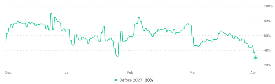 Odds of crypto market construction laws approval by 2027. Supply: Kalshi