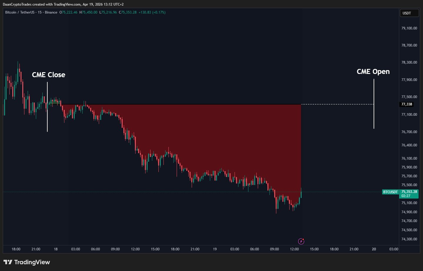 Persevering with, dealer Daan Crypto Trades eyed a potential gap in CME Group’s Bitcoin futures market opening because of the weekend comedown.