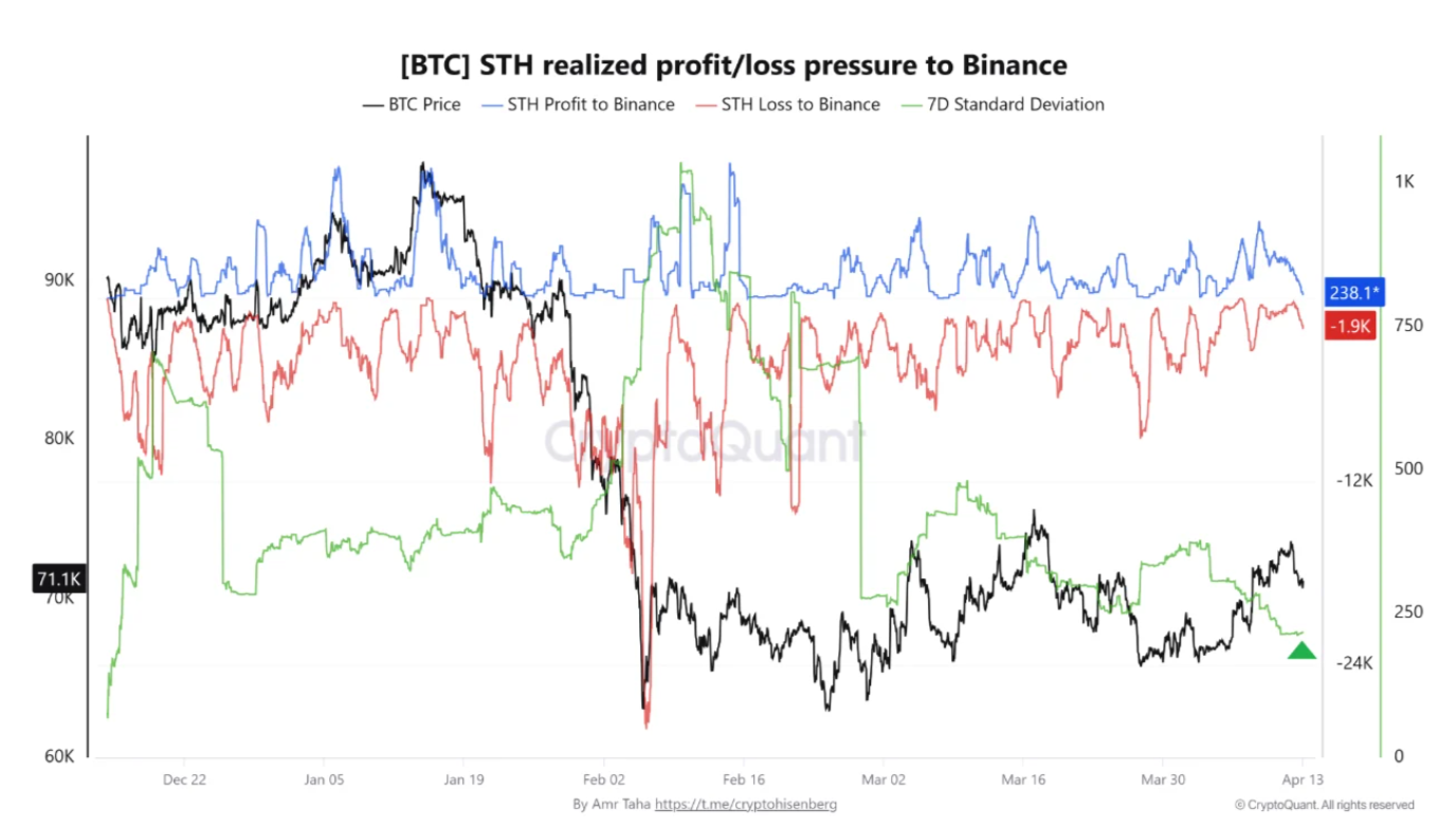 “The transfer indicators that short-term holders are sending cash to Binance with much less aggressive profit-taking and fewer panic-driven loss realization, decreasing near-term distribution strain available on the market.”