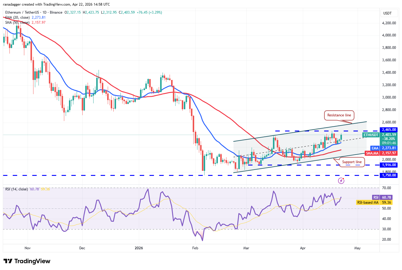 Ether (ETH) rebounded off the 20-day EMA ($2,273) on Monday, indicating a change in sentiment from promoting on rallies to purchasing on dips.