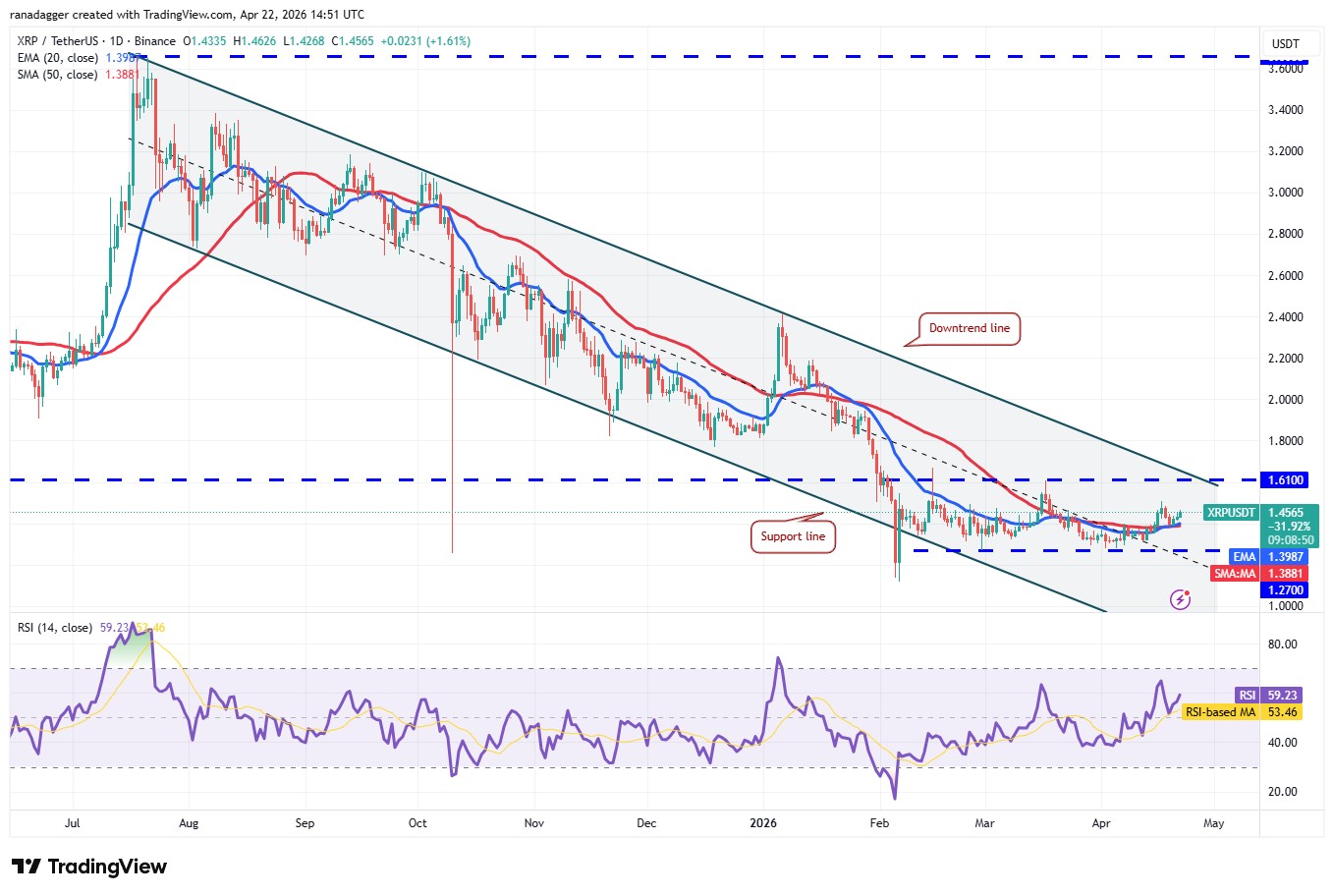 Patrons will try to push the XRP worth to the downtrend line of the descending channel sample, the place the bears are anticipated to promote aggressively. If the value turns sharply down from the downtrend line, it means that the XRP/USDT pair could spend extra time contained in the channel.