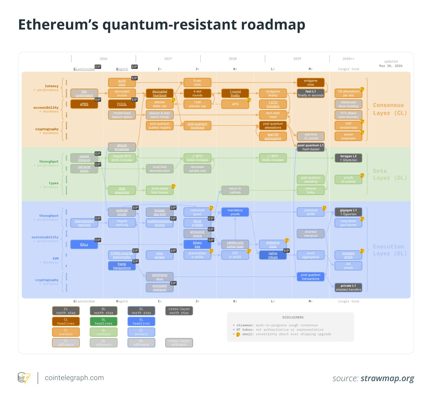 Ethereum, against this, is pursuing a extra proactive and structured technique. The Ethereum ecosystem has begun formalizing a post-quantum roadmap that treats the problem as a multi-layered system improve moderately than a single technical adjustment.
