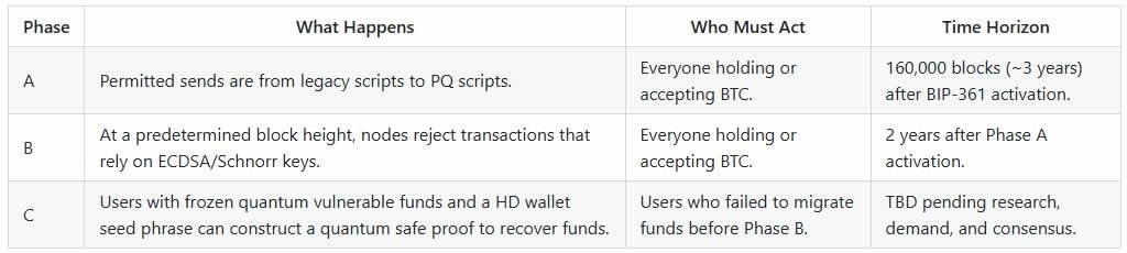 There may be additionally a security window the place quantum-vulnerable transactions may nonetheless be allowed after the five-year mark proposed in BIP-361, however with outputs locked for a interval.