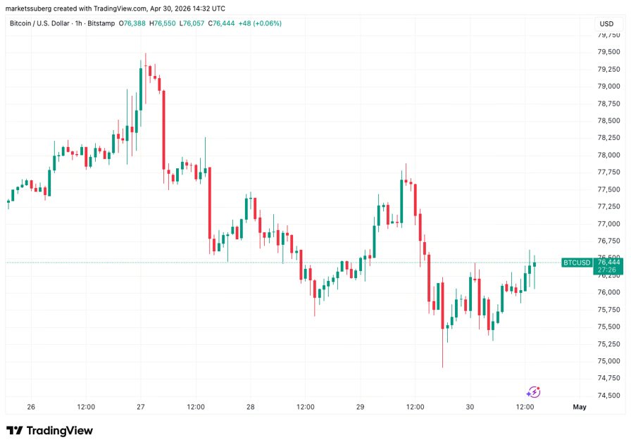 Bitcoin (BTC) rebounded above $76,000 at Thursday’s Wall Avenue open whereas merchants stayed bearish on the short-term BTC worth outlook.