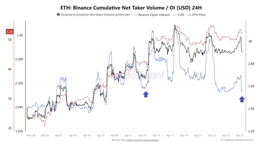 On Binance, Ether’s open curiosity (OI) has dropped to $2.58 billion, matching ranges seen when ETH traded close to $2,200 earlier this month. The decline factors to a reset in leverage following the latest positioning buildup.