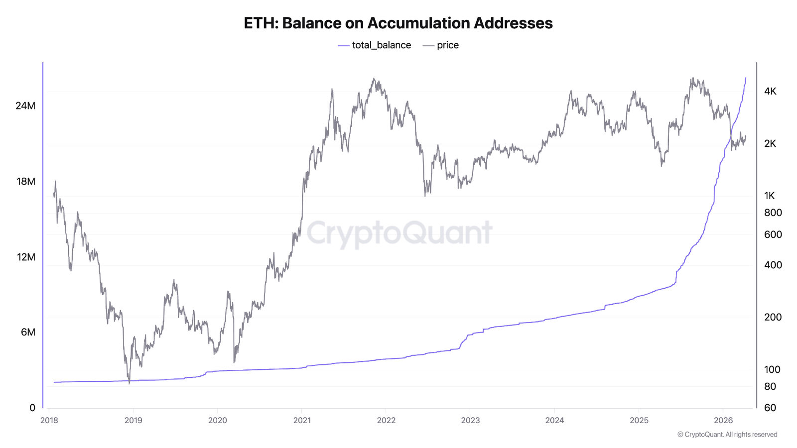Knowledge from CryptoQuant shows that ETH accumulation started in late 2025 and has proceeded extra aggressively all through 2026.