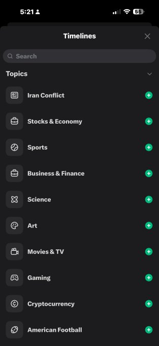 Whereas this seemingly displays the present conversations going down on X, it’s additionally an instance of how a product choice can affect what information individuals see. A cleaner answer could be to arrange the handfuls of choices into bigger high-level classes listed in alphabetical order, with the subcategories showing whenever you faucet every. That might enable X to enormously broaden its “information” classes past these large three.