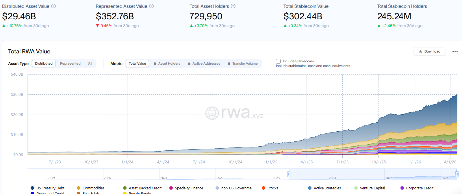 The worth of tokenized real-world belongings on public blockchains has been on the rise in 2026, and is sitting at over $29 billion, up over 10% within the final 30 days, according to knowledge from rwa.xyz.