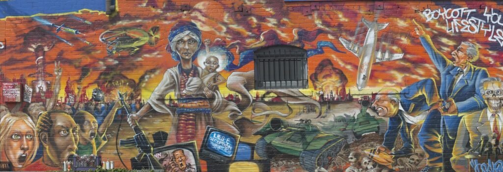 BMAG: You had been making anti-war road artwork throughout the first Gulf Battle. Now, greater than thirty years later, we’re watching one other navy escalation within the Center East — this time with Iran. The equipment seems totally different, the justifications sound totally different, however the financial structure beneath it’s remarkably related. For a era that got here of age watching 9/11 change into the justification for 20 years of warfare after which watched the 2008 crash reveal that the monetary system underwriting all of it was itself a fraud — whenever you see this cycle repeating, does it really feel like affirmation of one thing you’ve been saying on partitions for many years, or does it really feel like failure — that the message didn’t land?