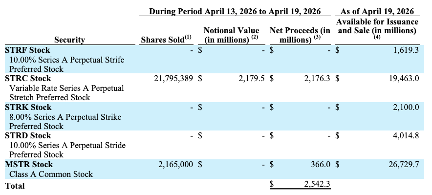 In response to the submitting, STRC generated $2.18 billion, or about 85.7% of whole proceeds, whereas gross sales of Class A standard inventory (MSTR) contributed $366 million.