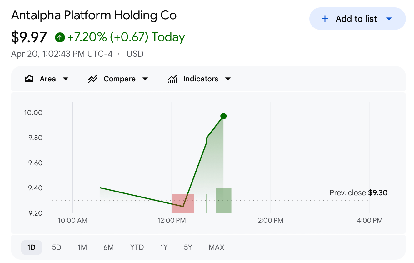 Antalpha raised about $49.3 million in final yr’s IPO at $12.80 per share, in response to its prospectus. Tether had beforehand indicated curiosity in buying as a lot as $25 million price of shares.
