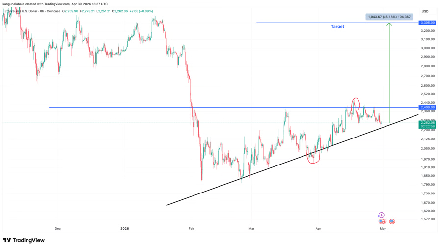 Ether (ETH) has rebounded greater than 25% from its February low under $1,800, and a mixture of technical and onchain indicators suggests the restoration should still have extra room to run in Could.