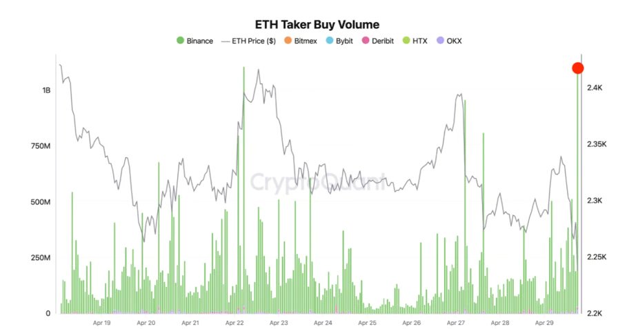 ETH taker purchase quantity. Supply: CryptoQuant